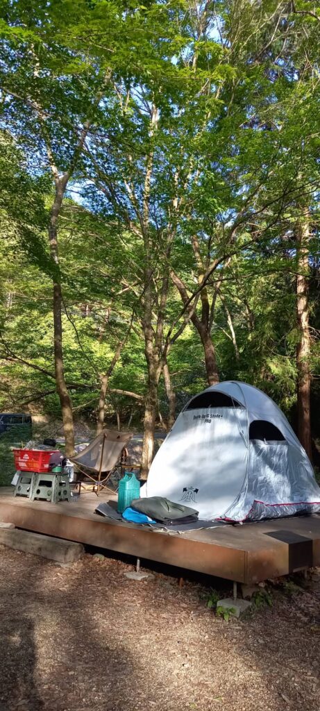 昨晩はお風呂入らずにテントで寝たみたい。